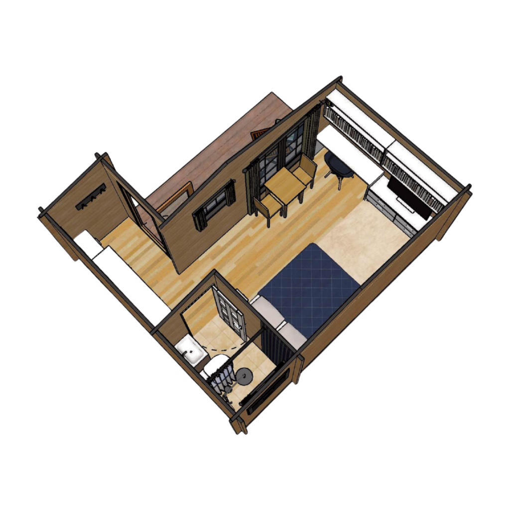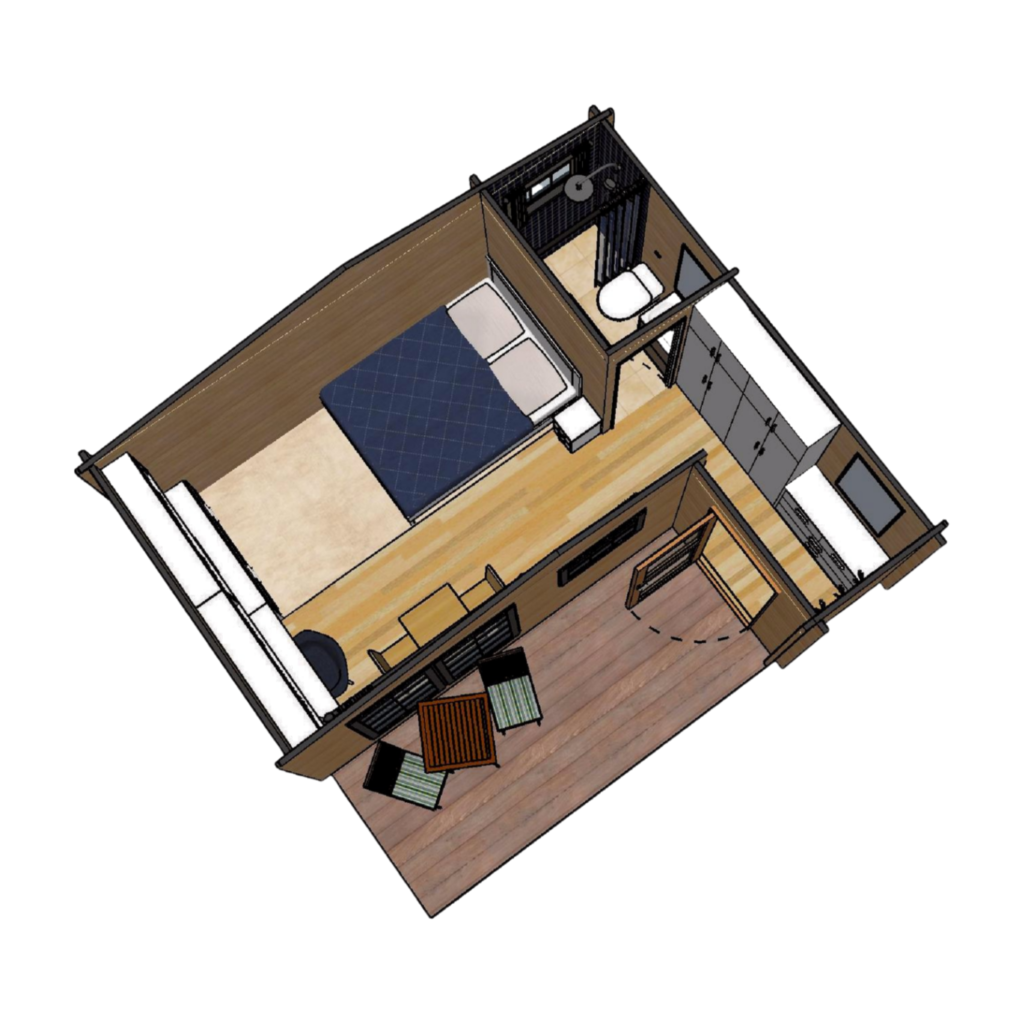 A well planned house suitable for 1-2 people. Plenty of storage facilities in the entrance area. Attached bathroom with shower.